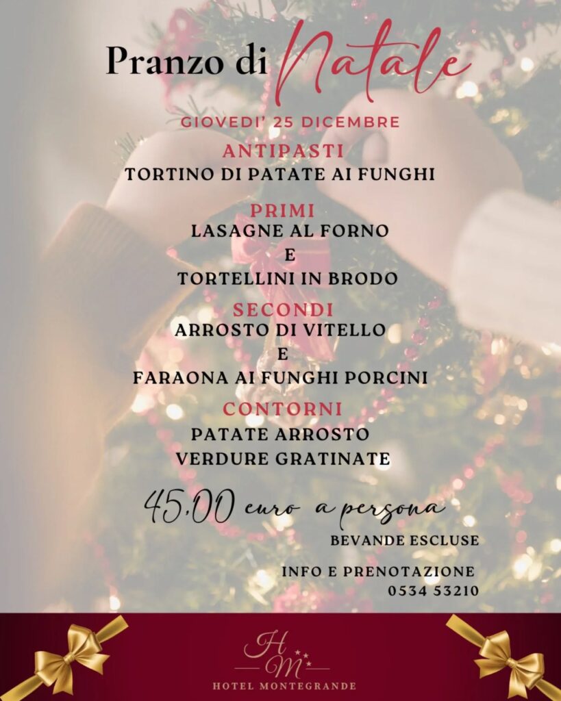 Il 25 Dicembre e il 31 all’Hotel Montegrande, il Natale e il capodanno si celebrano a tavola.